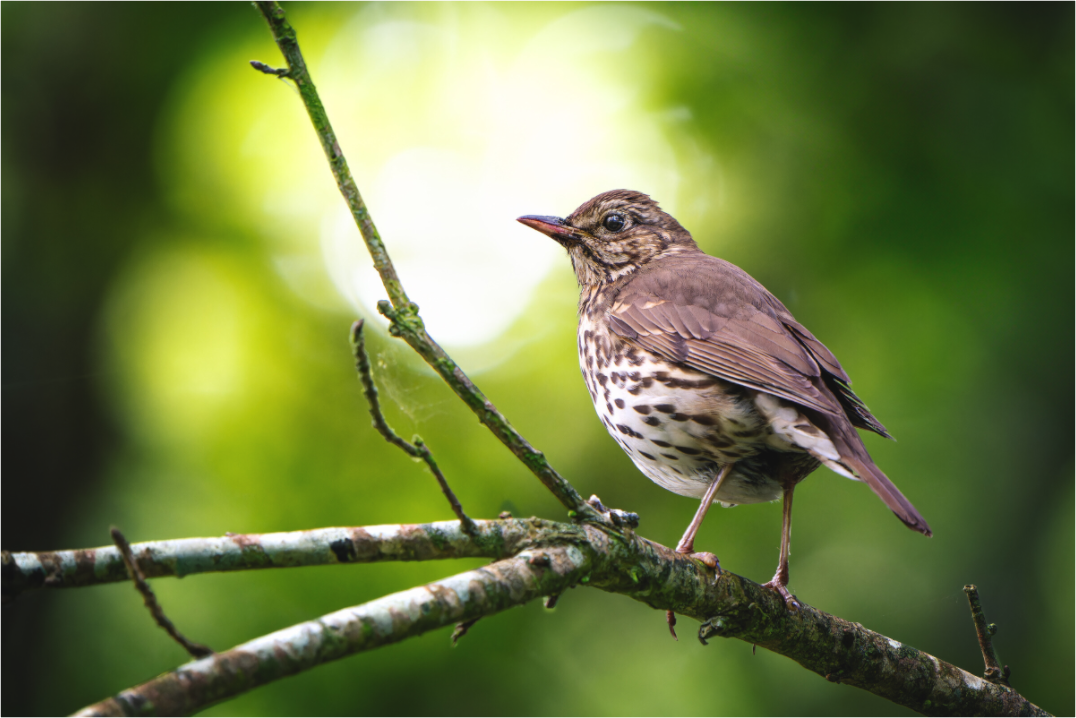 La Grive, discrète messagère, semble façonnée de mousse, d’écorce et de lumière filtrée.