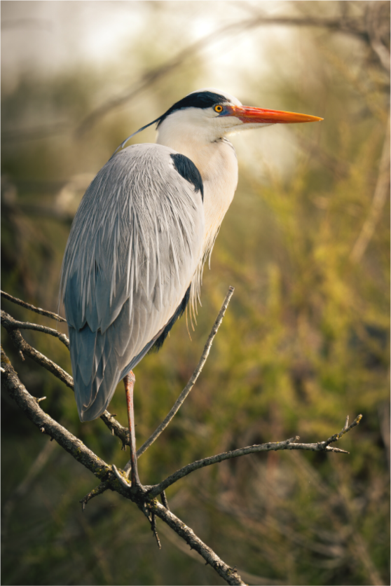 Son plumage capte la lumière neuve, chaque filament argenté devient un pinceau que l’aube a trempé dans son or.