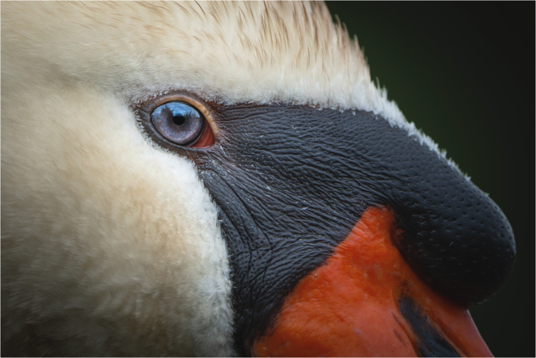 Dans l’œil du cygne se cache un monde secret, une étincelle fragile posée sur l’infini des eaux. Sa pupille claire, semblable à une larme tombée du ciel, reflète la sérénité des lacs et des étangs qu’il habite. Cette lueur azurée n’est pas seulement un regard : c’est un fragment d’éternité, la mémoire des aubes brumeuses et des crépuscules dorés.